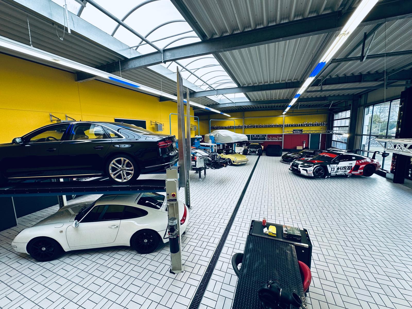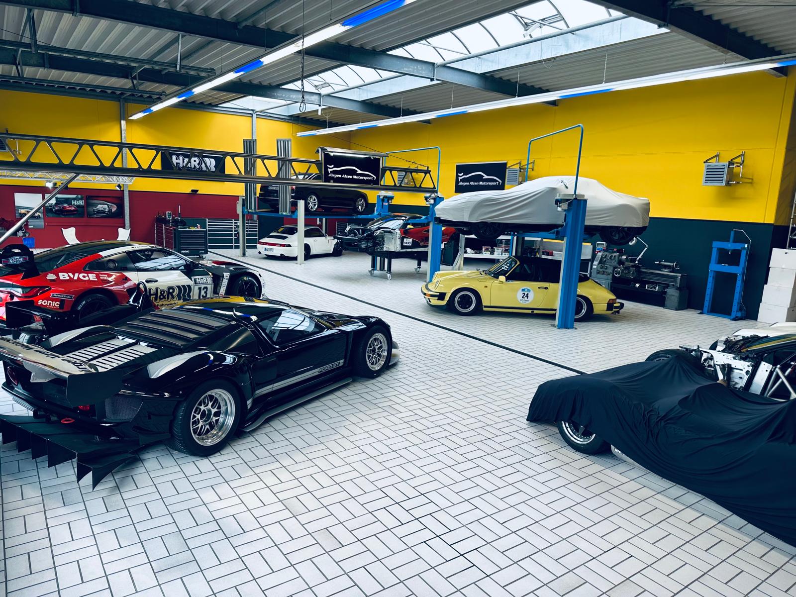 „Es ist ja nicht mehr so, dass unser Ersatzteillager übervoll mit Komponenten für klassische Neunelfer wäre“, sinniert Jürgen Alzen mit einem Blick auf ein in einem frischem Gelb lackiertes, soeben erst fertiggestelltes 911 Carrera 3.2 Cabriolet. „Ich habe 1989 mit der Porsche-Materie angefangen und im Laufe der Jahre bestimmt auch mal etwas weggeworfen. Ich habe im Jahr 2000 zwar in Betzdorf-Dauersberg einen Neubau eröffnet, aber alles dort einlagern kann ich auch nicht – leider. Also musste vieles noch einmal besorgt werden, was wir auch so gemacht haben.“ Nach 29 Gesamtsiegen in der Langstreckenmeisterschaft auf dem Nürburgring verlagerte sich sein Schwerpunkt. Das Handwerk des Porsche-Restaurateurs ist eine seiner veränderten Stoßrichtungen, auch wenn er heute mit einem aktuellen BMW M4 GT3, wie er zum Beispiel in der DTM zum Einsatz kommt, noch immer seine Rennen fährt und diese hin und wieder auch gewinnt. Doch nicht nur Jürgen Alzen selbst hat seine Ausrichtung erweitert, an die Marktlage angepasst. Dasselbe gilt auch für seinen Betrieb, den er vor 24 Jahren zunächst als Rennwagenklinik eröffnet hat.